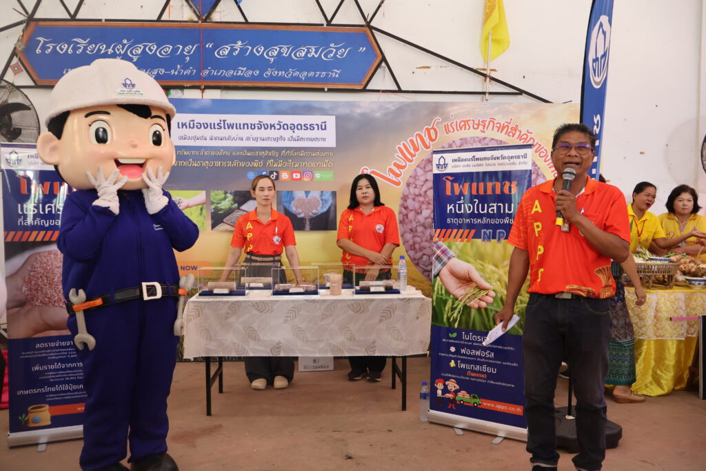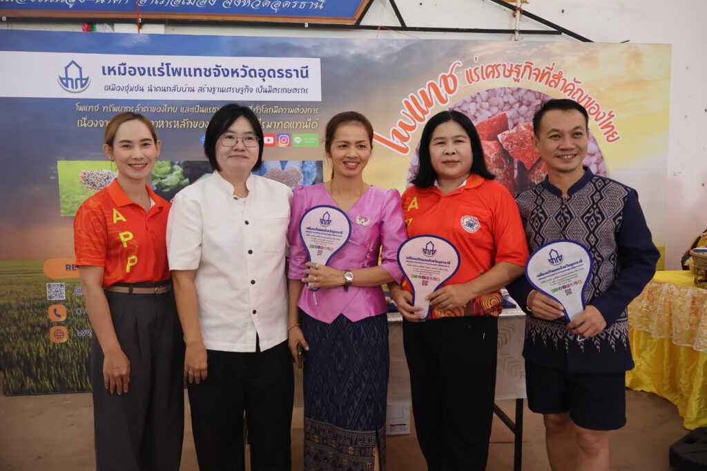 “การจัดงานในครั้งนี้ ทำให้เห็นว่าแต่ละชุมชนมีสินค้าและผลิตภัณฑ์ที่มีคุณภาพ ผลิตภัณฑ์บางอย่างได้รับการสืบทอดมาจากบรรพบุรุษ ซึ่งควรค่าแก่การรักษาไว้และสืบทอดไปยังคนรุ่นหลัง ทั้งนี้ หากผลิตภัณฑ์ต่าง ๆ เหล่านี้ ได้รับการพัฒนาต่อยอดโดยได้รับการสนับสนุนจากทุกภาคส่วน ก็จะช่วยสร้างรายได้ สร้างอาชีพ ให้กับคนในชุมชนของเรา ทำให้ชุมชนของเรามีความเข้มแข็ง โดยเหมืองแร่โพแทชจังหวัดอุดรธานี ก็พร้อมให้การสนับสนุน ซึ่งปัจจุบันก็ได้มีการจัดตั้งกองทุนพัฒนาหมู่บ้านรอบพื้นที่เหมืองแร่ เพื่อดำเนินงานด้านการส่งเสริมอาชีพและกิจกรรมต่าง ๆ เพื่อพัฒนาคุณภาพชีวิตของคนในชุมชน และได้มีส่วนร่วมในการสนับสนุนกิจกรรมต่าง ๆ ของชุมชนมาอย่างต่อเนื่อง” นายสมโภชน์กล่าว