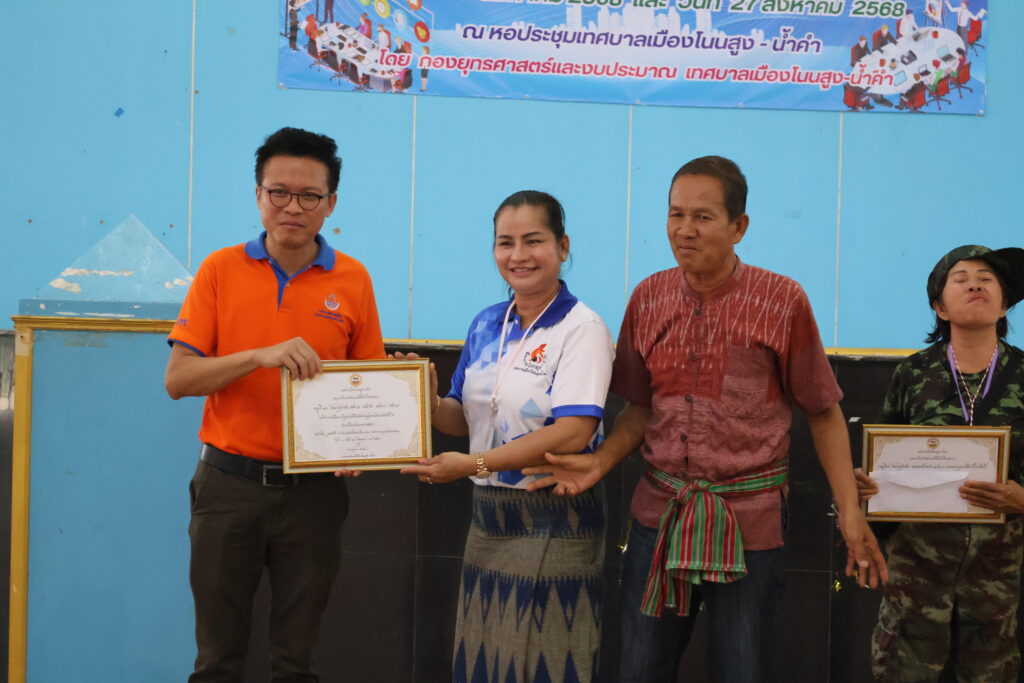 ทั้งนี้ ผลการประกวดชุมชนที่มีอัตลักษณ์ชุมชนดีเด่น เทศบาลเมืองโนนสูง – น้ำคำ ประจำปีงบประมาณ 2568 หมู่ที่ 2 ซึ่งประกอบด้วย ชุมชนน้ำคำ , ชุมชนเย็นน้ำคำ , ชุมชนนาคะวิชัย , ชุมชนบูรพา , ชุมชนรุ่งอรุณ และชุมชนค่ายยุทธศิลป์ประสิทธิ์ ได้รับรางวัลชุมชนที่มีอัตลักษณ์ชุมชนดีเด่น ประจำปีงบประมาณ 2568 ในครั้งนี้